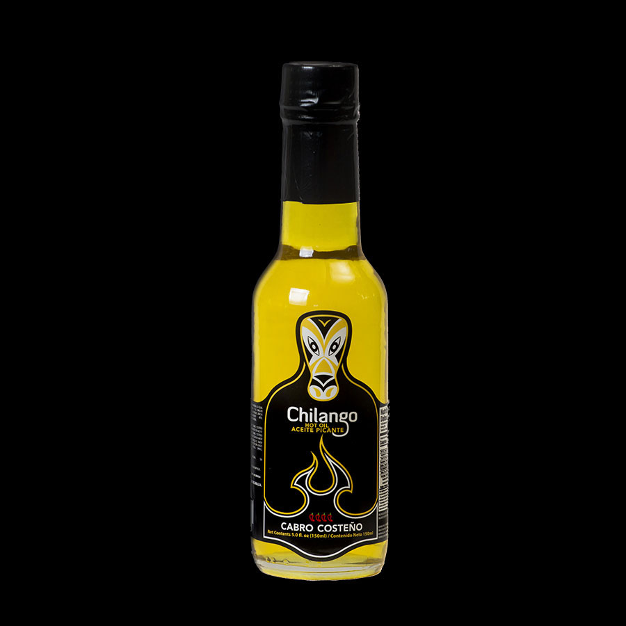 El aceite picante Cabro Costeño Chilango es elaborado con aceite de oliva y chile Cabro Costeño amarillo. Este aceite con un sabor caribeño picante realza el sabor de las comidas y puede ser usado con pescados, pastas, carnes, frijoles y huevos.